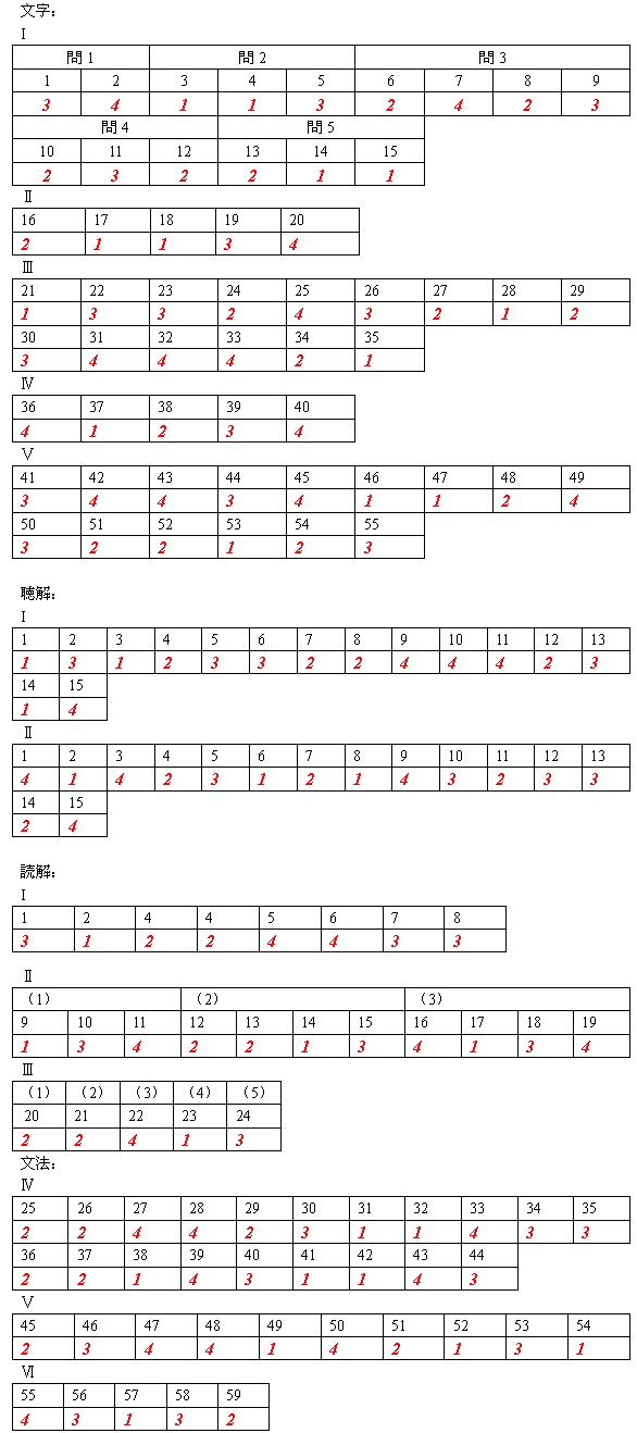 2009年12月日语能力考试答案
