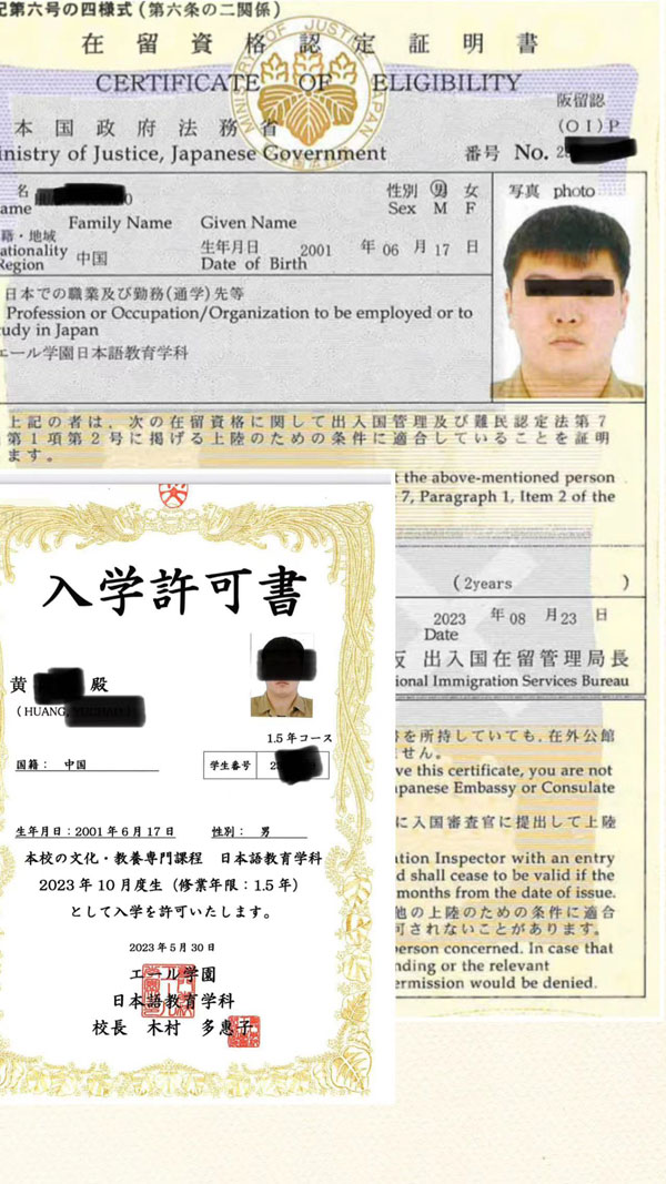2023年10月生在留资格书下达,9月底飞住日本留学