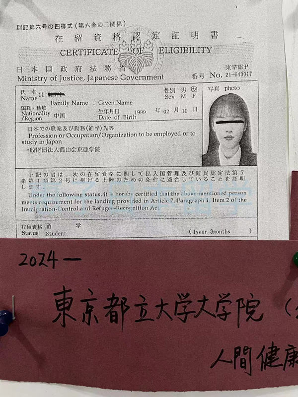 祝惠子日语社学员2024年入学日本东京都立大学大学院,主攻人间健康科学研究。