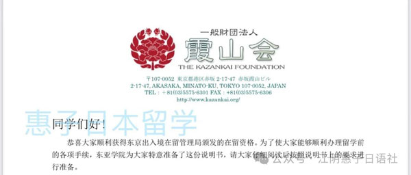 恭喜惠子日语社学员顺利拿到日本东京霞山会东亚学院的在留资格证明书,意味着将开启日本留学之旅,祝同学们学业有成,平安健康快乐地过好异国生活!