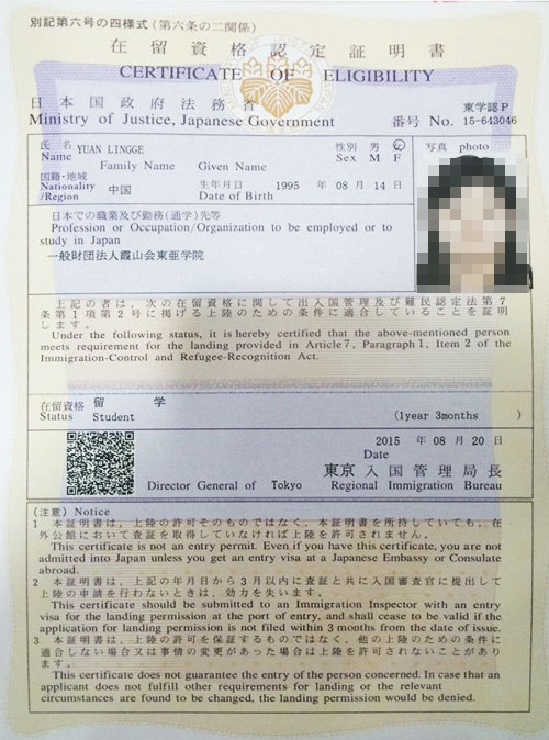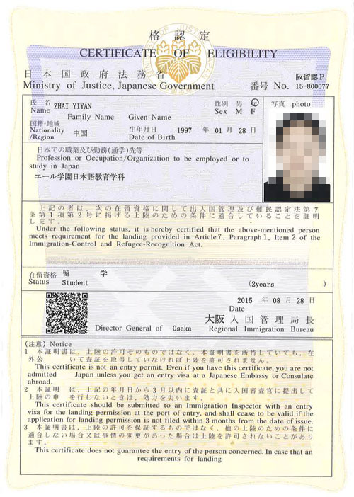祝贺翟依颜同学和袁玲葛同学取得日本留学在留资格证书