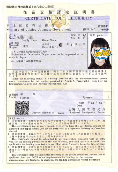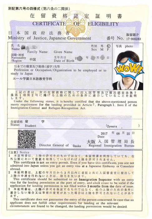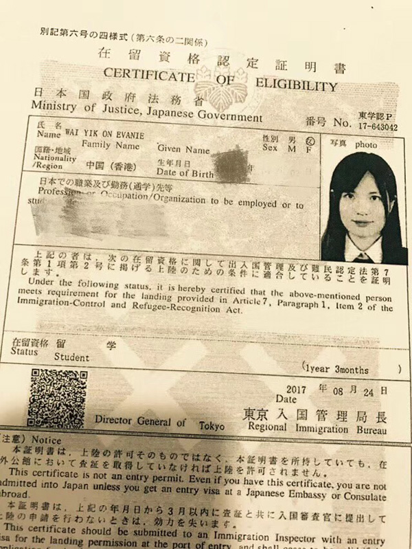 2017年10月日本留学生在留资格证明书100%下达喜报